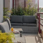 Along with comforts like an iron and ironing board, and air conditioning, such modern facilities as a TV set with satellite channels and Wi-Fi are also at guests' disposal. The interior elements include a sofa and a work desk, as well as a fireplace. Offering a separate toilet and a shower, a bathroom comes with a dryer and towels.